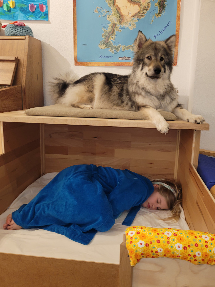 Die Kleinen kommen in unserer Küche, also mitten in unserem Leben zur Welt und sind von Anfang an ein Teil unserer Familie. Aus dieser Geborgenheit heraus können sie die Welt entdecken, zunächst den angrenzenden Wintergarten und dann geht es direkt in den großen Garten zum Toben, Spielen und natürlich zum gemütlichen beisammen Sitzen am Lagerfeuer.