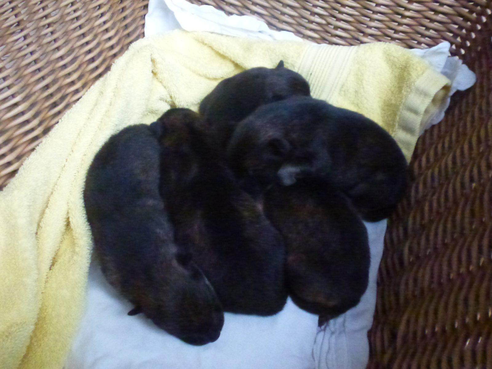 Zum Glück haben die Mutter und die fünf gesunden Welpen, es kamen noch zwei Buben hinzu, alles gut überstanden. Um Mitternacht lagen erschöpft, aber glücklich die ganze Hundefamilie wieder in der Wurfbox und die Menschenfamilie in ihrem Bett.