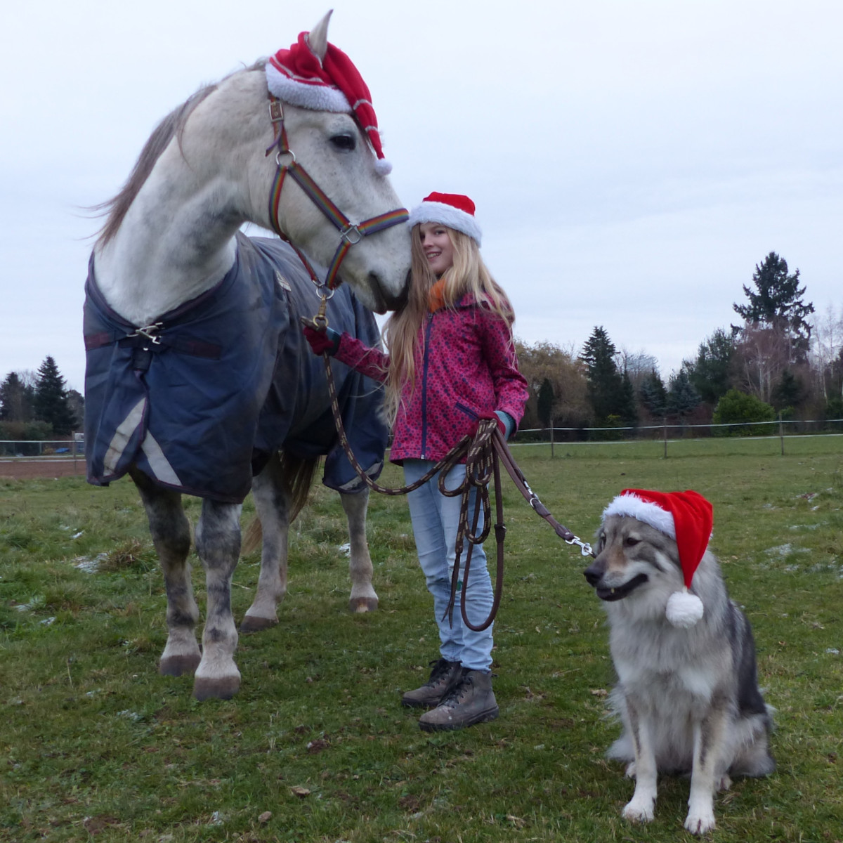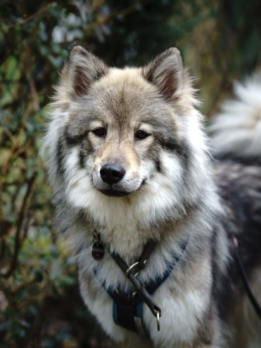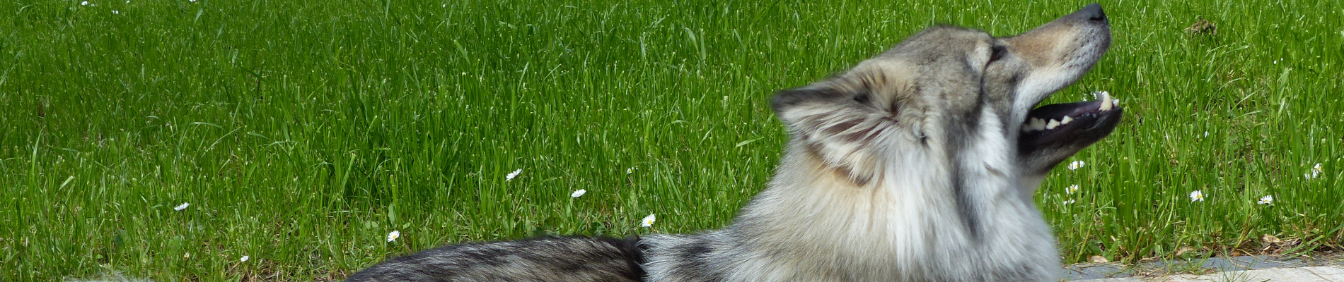 Ich bin am 29.04.2022 geboren und neun Wochen später bei meiner Familie eingezogen. Am Anfang sahen meine acht Geschwister und ich uns sehr ähnlich, aber heute sind die meisten von ihnen falbenfarben wie unsere Mama und unser Papa. Ich hingegen sehe fast aus wie meine Urahnen, die Wölfe. Zum Glück habe ich meine nach oben gebogene Rute, so verwechselt man mich nicht.