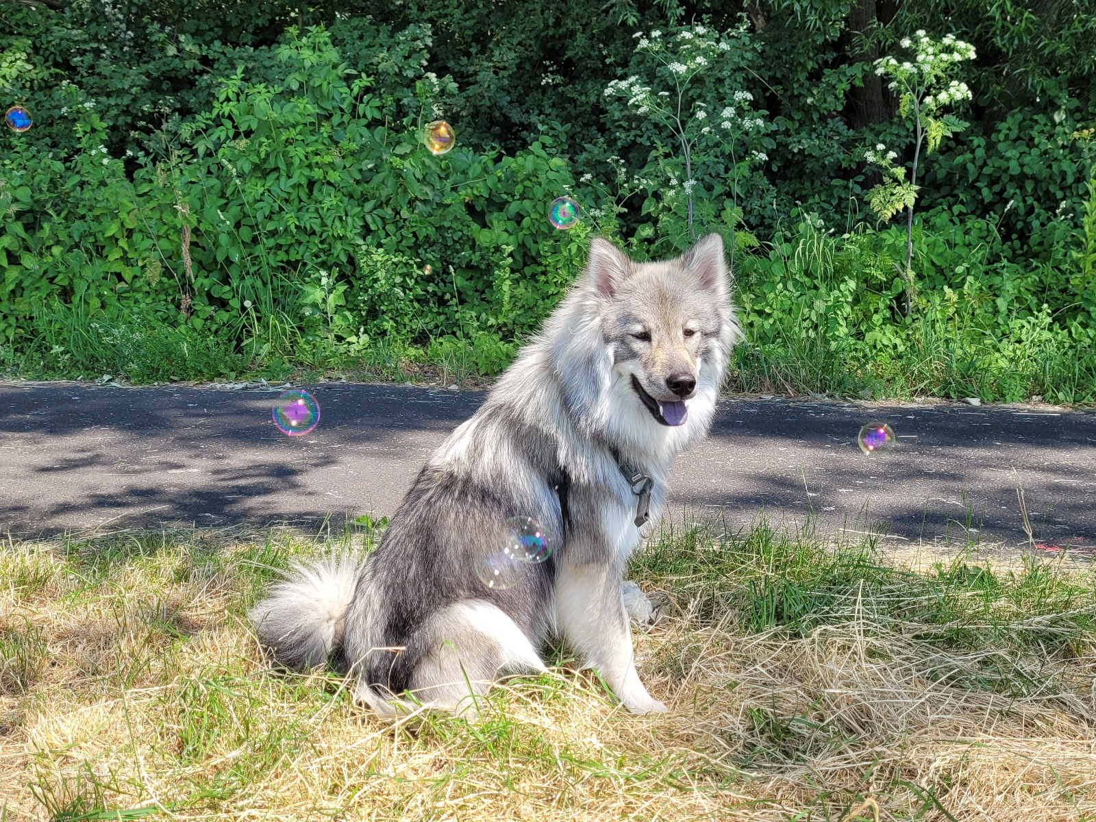 Wir Eurasier sind ja alle recht entspannt, aber ich bin auch für einen Eurasier eine coole Socke. Mich bringt so schnell nichts aus der Ruhe. Nur wenn ich bei Gewitter draußen bin, dann finde ich das ein bisschen gruselig und möchte ganz schnell nach Hause. Und ich mag den Schornsteinfeger nicht.